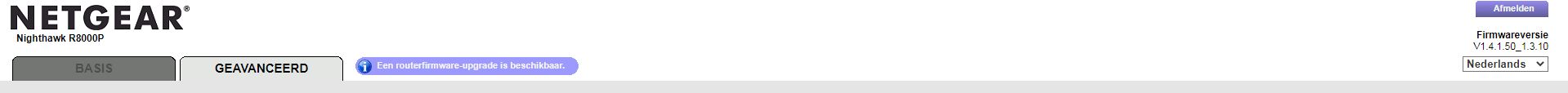 Krijg melding dat er een firmware update (R8000P-V1.4.1.64_1.3.25) is. Pas die ook toe. Router start opnieuw op, maar oude firmware versie blijft zichtbaar in rechter bovenhoek. Ook de melding van een nieuwe firmware update blijft zichtbaar.