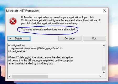 See the end of this message for details on invoking just-in-time (JIT) debugging instead of this dialog box. ************** Exception Text ************** System.Net.WebException: Too many auto...