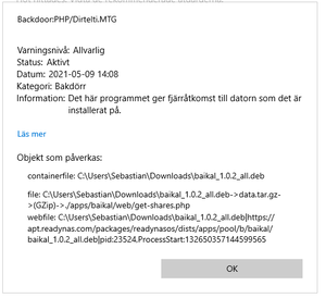 There is a virus in the "Contact and Calendars App" - a PHP Backdoor called "Dirtelti.MTG". Backdoor:PHP/Dirtelti.MTG threat description - Microsoft Security Intelligence I think that app should...