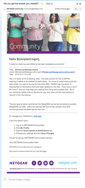 I can't seem to find a way to contact the Forum admins or netgear support (unless it's specifically about a product I bought). The notification email I'm receiving has some broken syntax in it. I...