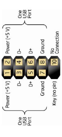 No rocket science. Each USB port requires four wires only, the two ground pins are locted to the side of the index port, in the middle two date lines (D+ and D-) with the ubiquitous 5 V Dcc.