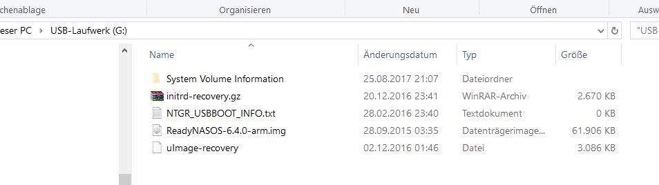 As next, I've started the boot menue and selected "OS Reinstall". No help. So I tried to create the recovery USB-Stick by using https://kb.netgear.com/app/answers/detail/a_id/29952
