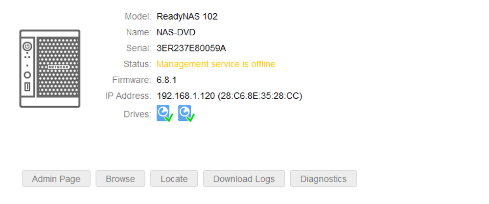 Ran RAIDar 6.3.0 and it tells me both drives are healthy but that the Management Service is Offline.
