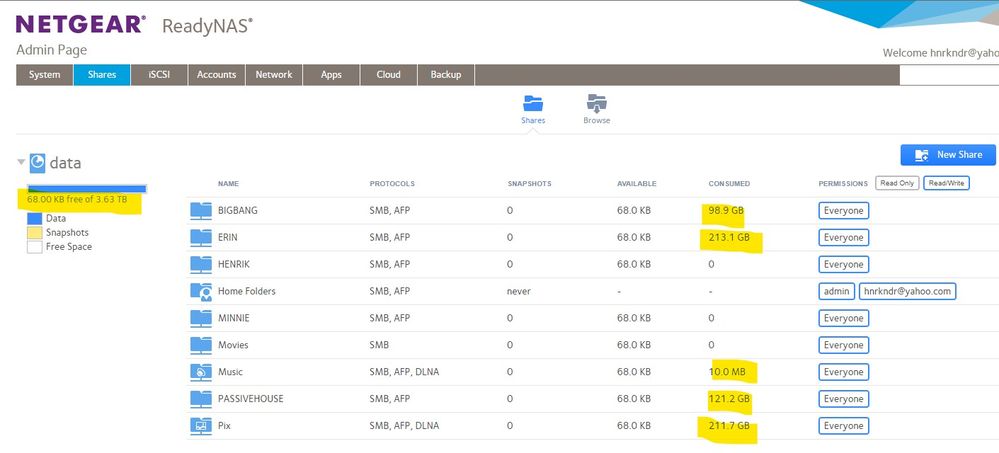 How much is in home folders? The GUI doesn't show usage there. Do you have any ISCSI targets?