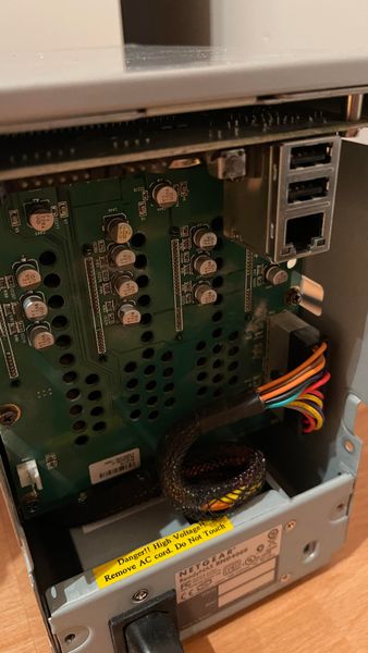 The eBay listing doesn't say in the title that it's for a ReadyNAS, you have to read the whole listing, which I didn't. So no rewiring should be necessary. But you also need working cooling for the supply, and a blocked fan won't accomplish that. So I disagree with the seller that this is a "drop-in replacement". I usually swap out the cover for the original and air dam and disable the fan, but I'm not sure that's possible with that particular supply. The other option is to install the supply slightly back. On the first one I did, I used some aluminum duct tape to just tape it inside the tray, and it seemed to work well.