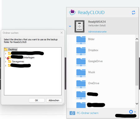 Readycloud-App für Win. Backup: nur Desktop-Ordner wird angezeigt, andere nicht