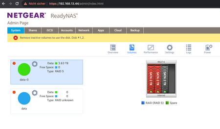 ReadyNAS 214 after reboot 'Remove inactive volumes to use the disk #1.2