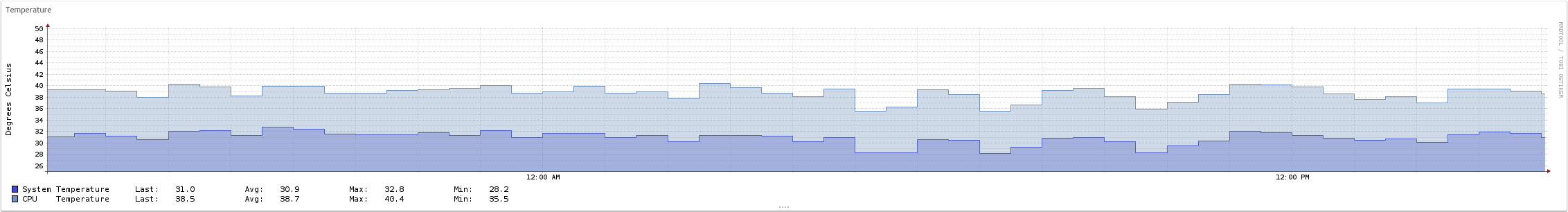 - My thinking is that the temperature sensitivity is set way too low, causing it to exhaust like crazy whenever the system reaches 32C (and CPU about 42C). Looking at your graph, and assuming that the drops correspond to fan speed increases, I conclude the follwoing: