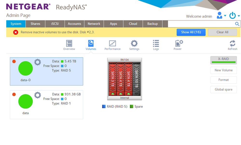 No drives have reported failures and my volume was originally called Data with around 6TB used in X-raid it seemes to have moved everything to a new volume and left the free space in the old volume.