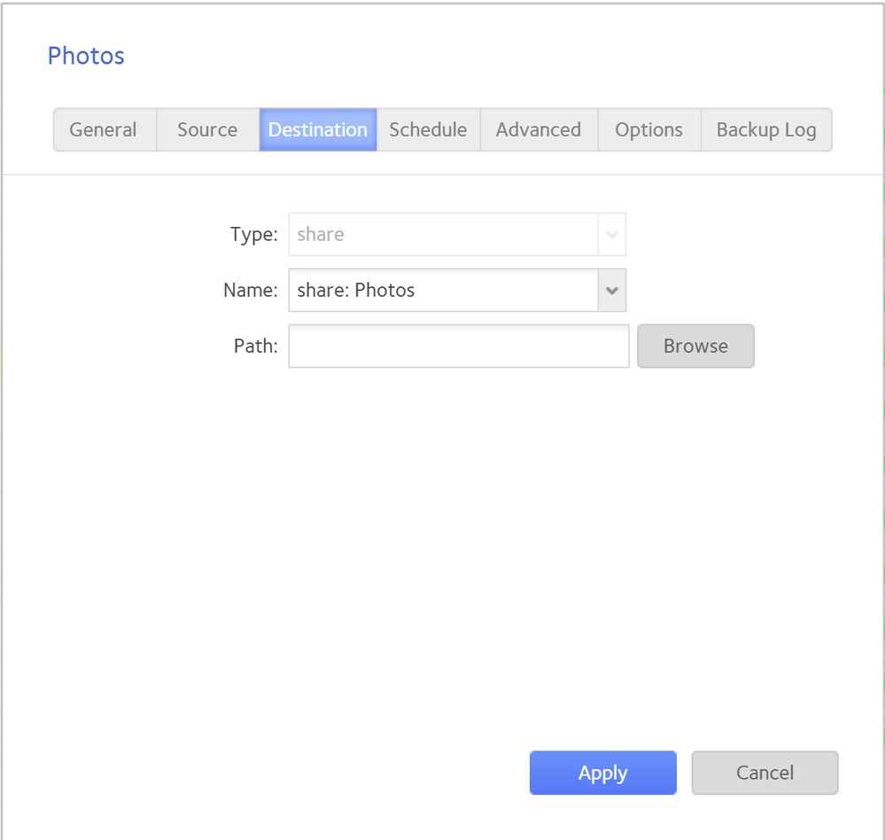 My aim is to be able to immediately switch to the backup NAS if something goes wrong with the primary NAS. I set up one backup job for each share (and set up the same shares on the backup NAS as I have on the primary one). My backup jobs are running on the destination NAS (which I call a "pull" backup). This allows me to put the destination NAS on a power schedule. The protocol I use is rsync, and this is set up to give me a mirror of what is on the primary NAS share. I also set up custom snapshots on the destination NAS to give me some retention (so I can roll back if I accidentally delete something).