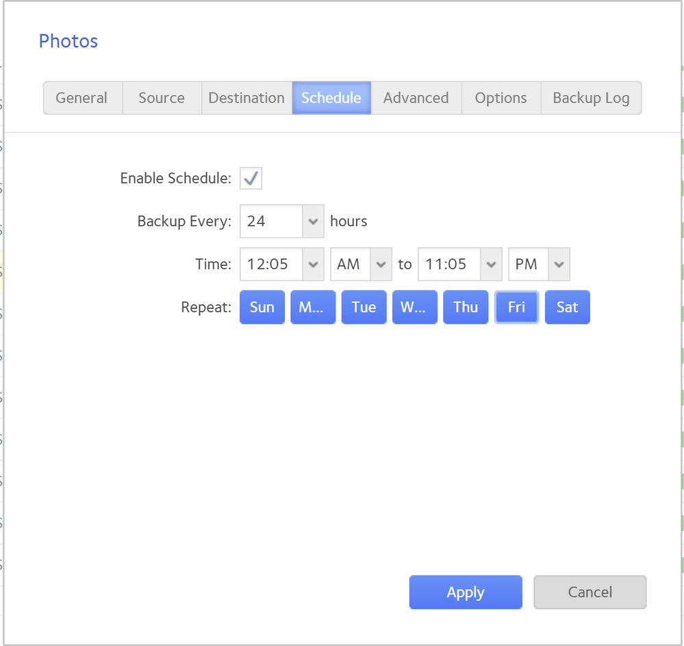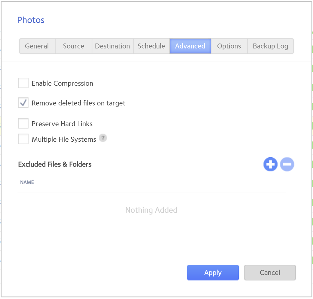 Here are screenshots of my backup job settings for one of my shares: