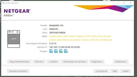 Bonjour, J'ai un Readynas 104 en 4x3To en RAID5 avec disque externe de sauvegarde. En quelque semaines, le disque externe de 10 To à rendu l'âme et quelques jours plus tard, le disque 4...
