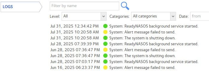 While I had it started.. here are logs (I noticed it today.. but guess it turned itself on on the 28th Jul.. exactly a month after I shut it down last.. to within minutes....may be a clue?)