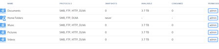 ...and how do you intend to write to the shared folders -exactly- ? What computers or client OS, how are you authenticating the users, groups, ...? Right now, it looks like only admin user has any access.