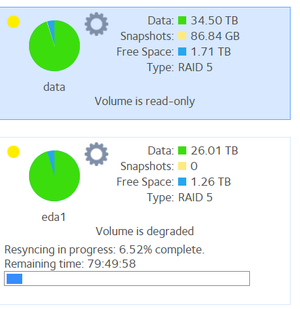 Hi, I'm facing an issue with my NAS system, which is made of a RN316 and a EDA500 with mainly all 8TB HDD (except 2 10TB ones). The problem is : an error occured on the 3rd HDD of the EDA500 mod...