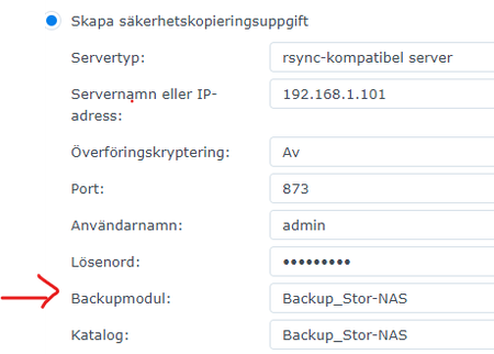This is the settings for the Synology NAS. "Backup_Stor-NAS" is the destination file share on the Netgear. I am not sure what a backup module is. However the Synology NAS accepts the settings. ...