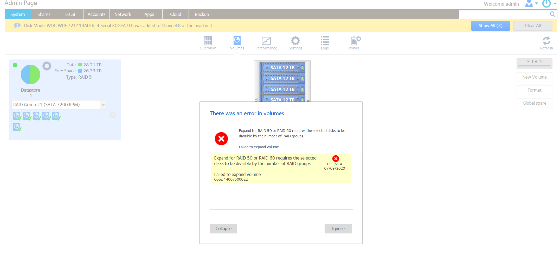 tried to expand with xraid off....NAS now thinks there's a raid 50 or 60 volume present
