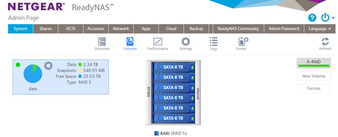 My question since I'm a OS newbie, is on the System>Volumes page, it shows "X-RAID" with a green button on the right side of the GUI, but over on the left it says "RAID 5". Is this correct or should it be in RAID 6 mode with X-RAID and 6 HDDs?