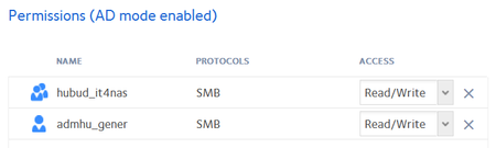 Hi, I created a share on an RN104 (latest firmware) that is set to AD authentication. Below are the settings. Share permissions: Settings -> Network Access Settings -> File Ac...