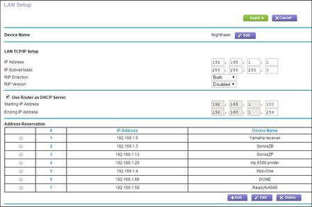 Default Gateway . . . . . . . . . : 192.168.1.1My dune is congured to access the share via ip address. The dune is set to optabin ip address automatically, I will try to assign a static ip to it (in the dune itself) now that I know what gateway and subnet mask to put in there. Should I also remove it from the static assignment from within my router, or it doesn't matter?