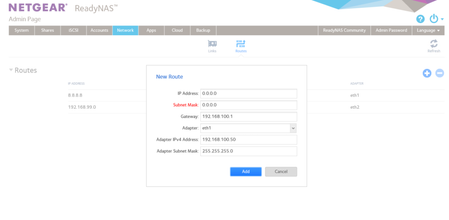 root@Netgear:/# route add default gw 192.168.100.1 eth1