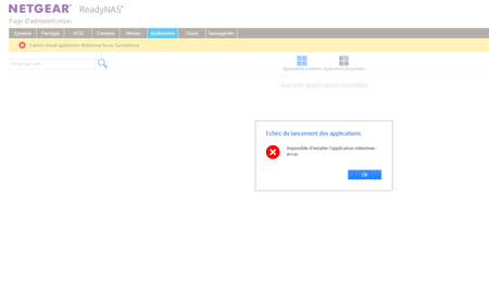 Hello, I am trying to install Milestone Arcus Surveillance on ReadyNas 314 6.10.8, but when i click on install button i have this message : Are you able to help me ?