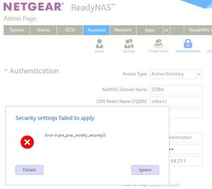 HI, I have a problem with the authentication on my NAS RN312 - OS : 6.6.1 after a reboot. My NAS has an authentication with Active directory that was OK until last Friday. Today, I have this ...