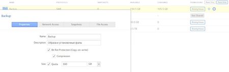 I inserted in it 2x 2TB hard drive and conver it in RAID-0 FlexRAID. Then I add 3 share (1 - unlimited, 1 - 30GB and 1 - 300GB quotas). Then I tried to send abou...
