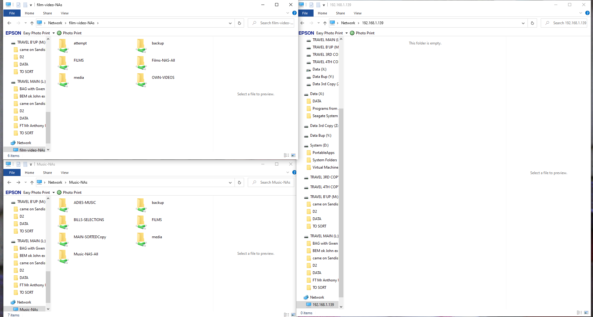 NOW I can access both NAs share folders using \\nas-name BUT if i go back to using the \\Ip-address, for both NAS that now comes up as 'this folder is empty????? See image I did try closing the film one opened using \\nas-name but still using the Ip address option it came up as empty. I'm only a simples Guy, so getting a little bemused why entry options keep moving so.
