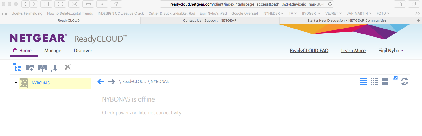 I can't get conneted to my Storage, it says the is is off ine, but...when I click on nybonas in Finder (MAC) I can reaced my files. I can only log in was a guest... Kindly Eigil Nybo