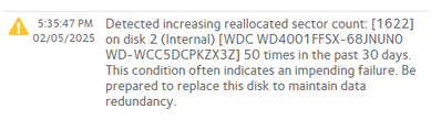 I reseated the drives and now it's up with a status of Volume data is syncing. Now that I can access the web interface I saw this