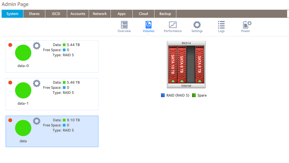 Readynas 314 volumes lost and showing red