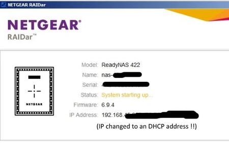 ReadyNas 422 "System Start up " freeze ? The staitc IP address was changed to a dynamic one ???