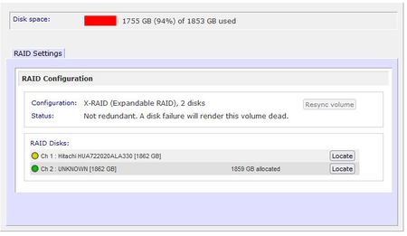 The frustrating thing is that the "resync" is not available on the volumes screen. Is it possible that the NAS is not trying to reformat and sync drive 2 because it thinks drive 1 has failed?