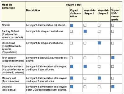 J'arrive bien à allumer le voyant disque pour chacune des options mais lorsque j'appuie sur le bouton reset au dos du NAS pour lancer le mode de démarrage en question, il ne se passe rien.