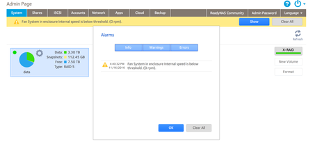 If ReadyNAS Pro 6 then it means you have loaded an OS6 firmware. Please check the discussion here if it helps as the user also replaced the fan.