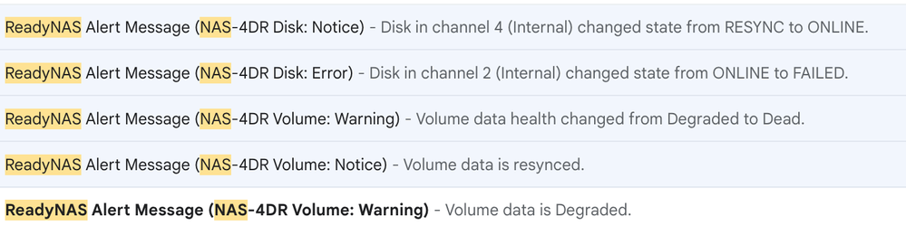 I have had no problems with my ReadyNAS RN104 for 7+ years in RAID 5, when a few days ago I got this message: "Disk in channel 4 (Internal) changed state from ONLINE to FAILED." I had been running with 4x 4TB WD drives.