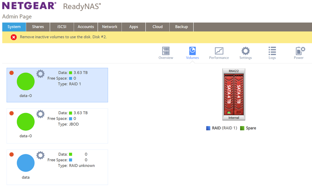 This is what I can see if I log into my NAS. Disk 1 is the original and Disk 2 is new blank and formatted.