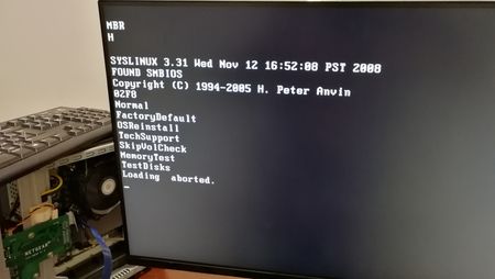 Good day. After a power outage, it will not start. It only show "Boot Menu" in display. I connect vga: Following the manual I attempt to do do either a Factory Reset or an OS Reinstal...