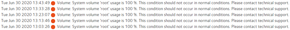 My ReadyNAS RN2120 is getting me the error that the system volume 'root' is at 100% usage