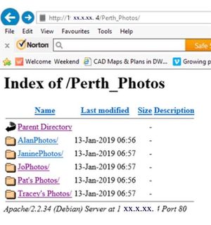 I have created a share on my NAS (Perth_Photos) and I think I have done everything correctly, yet when I go to my browser and type in http://1XX.XXX.X.XX/Perth_Photos the browser displays this. ...