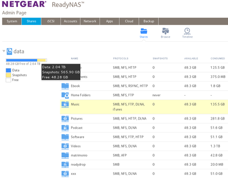 I have a RN104 with 6.4.1 firmware. It shows 2.04 Tb of data and 565 Gb of snapshots but there is no snapshots in the shares, I think they began invisible after upgrading the firmware. I saw some pos...