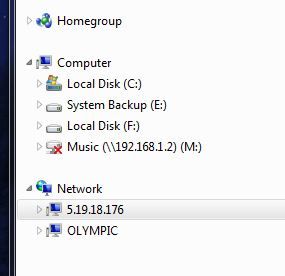 No, the address 5.19.18.176 is nowhere to be found on any other machine. I was able to access the admin page from the same old internal address on my Mac and PC, so no issue there. I did type the new IP into my address bar and got a server timeout page. The new IP has not recurred on my Windows 7 machine. Now, the NAS name shows as normal with all shares accessible. Performance is back to normal. This is without ReadyCLOUD running.
