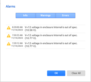 While the 12V is monitored after an internal regulator, so low 12V is not always the power brick's fault, it often is. And your additional symptom seems to make it more likely. Replacement supplies aren't that expensive if you just want to buy one and see if it fixes it. But do be careful what you buy, as some are over-rated as to the current they can deliver. If a listing has intentionally hidden the power capability of the supply, like "strategically" placing the power cord over the label or just blanking it out, stay away even if it's listed as "for ReadyNAS". I recommend you stay away from anything just advertised as for "LED lighting" and lean toward one that lists IP cameras or NAS (but does show that it's at least a 5A supply), as they tend to be better regulated. I normally go for a 7.5A instead of the 5A of the original, just to be sure. They only cost a couple dollars more on Amazon.