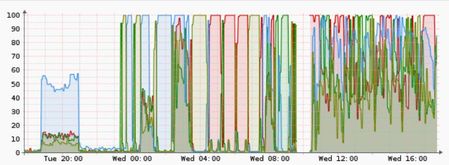 Today I'm trying to run a backup and I get horrible performance and not constant. In the graph below up is IOPS and down Network.