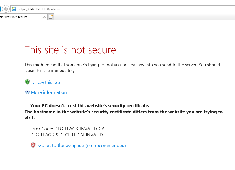 You should have gotten the cert warning when browsing before. The NAS uses self-signed certificates, and those cannot be verified. Just click through the "go on to the webpage" link.