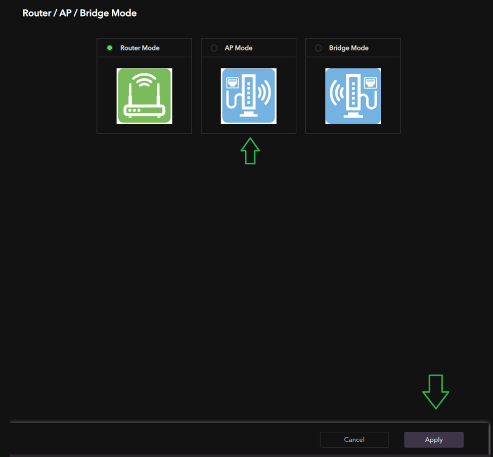Select on the AP Mode tile to select this mode for the NETGEAR router.