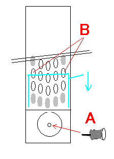 - r2_d21TutorIn below picture, first try to push in pinhole at "A". If this does not work, insert pin at "B", and move pin toward to buttom gently to release latch. This will move plastic block (colored in Cyan) behind front cover.
