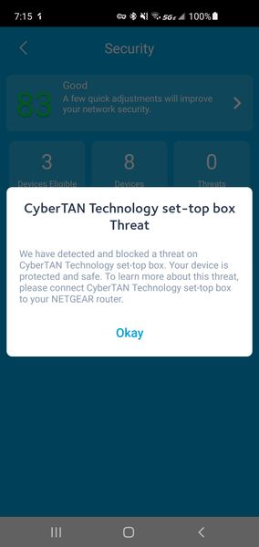 I keep getting threat notifications from Orbi (it's really an RBR40, but that isn't on the model list) on my mobile app, but they do not show up as threat on my security screen. When I started getting the threats they came from a Netgear WNR2000v5 router which powered a home security system. At that time Orbi showed the threat and would allow me to block or unblock it. Since the WNR2000v5 was removed from my system by Cox, their panel is now generating the threat notices, but without the option to block or unblock them. According to Cox the "threats" should be unblocked. My question is how do I do that since they are not showing up with that option. I've attached the pertinent screenshots from my Android Orbi app.