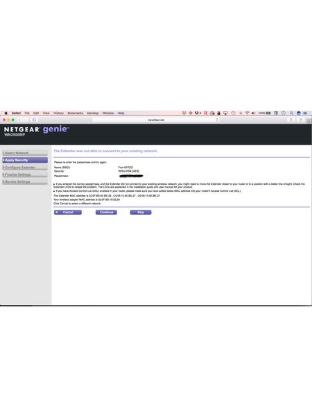 Attempts to connect using WPA failed (even when extender and router are an inch apart, also tried joining the two devices with cable lan1-to-lan1). I tried manual setup using netgear genie (I have no network expertise) from my ipad. Initially I received message that mac address needed to be added to router’s ACL (access control list) see first attached screen shot. But when I checked the router’s settings, ACL is NOT enabled. I reset the WN2500RP and tried manual setup again from my ipad. Every attempt after the first, I encounter this problem: I see the extender with my network name, but cannot maintain the connection to mywifiext.net long enough to complete the install. When I get to “you are now one step away from completing the installation”, I cannot check the box “my wireless devices are connected to the Extender network” because my ipad and iphone drop me from the network. See 2nd & 3rd photos. verizon is no help. Two techs say they can’t help unless it’s a verizon extender and the 3rd rep insisted that the problem is a verizon outage in our area (despite the fact that I can connect to the network from every device via the g1100 router and my fios phone is working). the wn2500rp connected fine to the previous verizon router. But that router was terrible—in a 2200 sq foot house, I needed an extender for the next room. The g1100 is significantly better, with access issues in only one room where a brick wall that is part of an addition is the problem. the extender connected to the previous router provided a signal, but it still wasn’t great (buffering, dropped connections) but this router’s performance in that room can at least connect without an extender but I think it would be much better with an extender. Is there something I need to do that is not obvious to me to make the connection between the wn2500RP and the g1100? I saw another poster with problems connecting these devices in december 2017, but there were no replies. is there a way to find out if there is some hardware or software incompatibility between the wn2500rp extender and the verizon g1100? Or a list of extenders that are compatible with the g1100 router? I do not want a verizon extender unless that is the only solution. thanks in advance.2.9KViews0likes3CommentsWN2500RP- cell finds 2G & 5G bands fails to connect, after change to Fastlane Tech